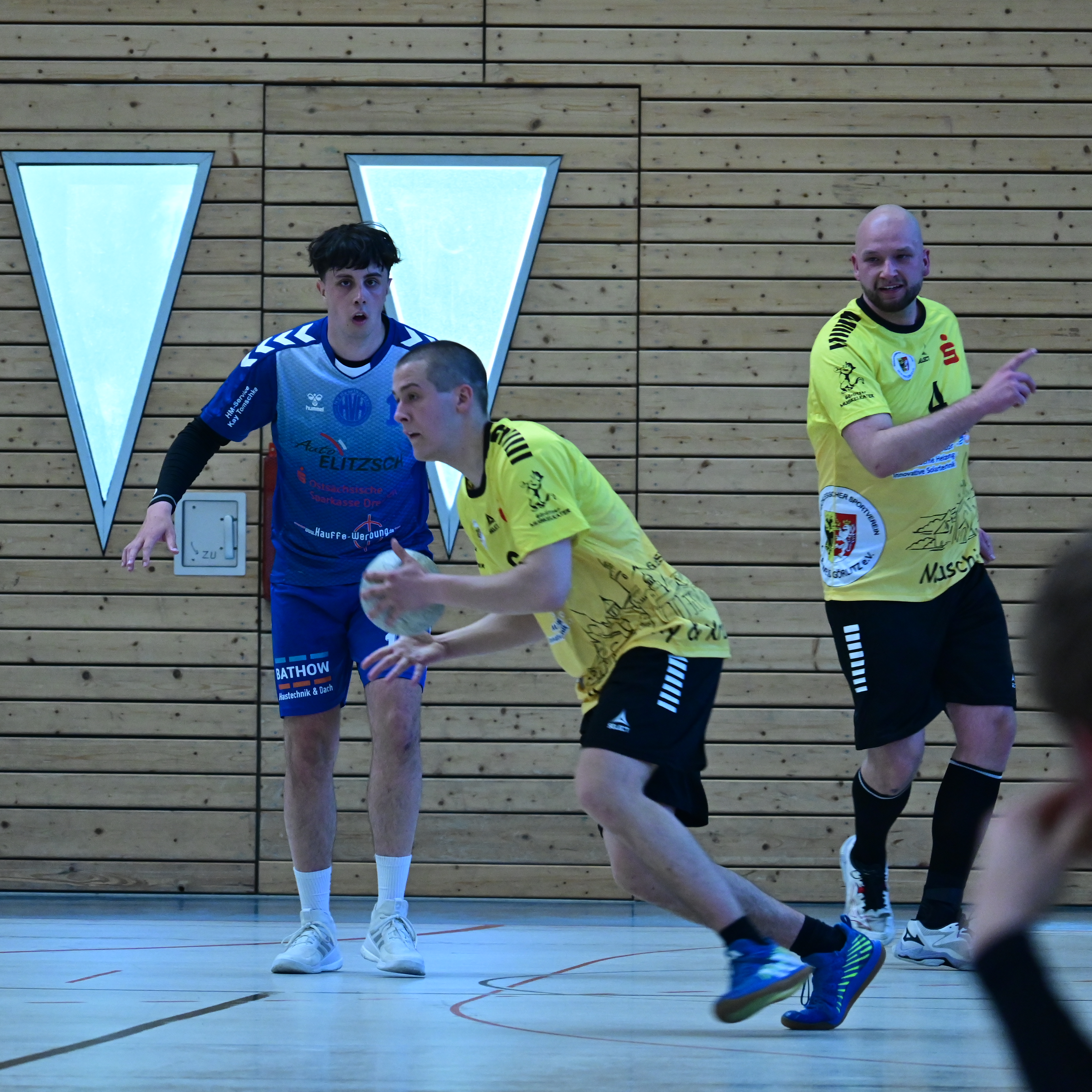 Samstagnachmittag trafen die Männer vom NSV Gelb-Weiß Görlitz auf den Tabellenzweiten LHV Hoyerswerda II. Dabei hatte die Oberligareserve vom LHV die Favoritenrolle inne. Die Gelb-Weißen wollten so lange wie möglich mithalten und auf gar keinen Fall total untergehen. Und was dann auf dem Feld zu sehen war, zeigte das wahre Leistungsvermögen der Neißestädter. Eine aufmerksame Abwehr, nach Ballgewinnen ein schnelleres Umschalten als in den letzten Spielen und im Angriff zielstrebiges Suchen nach dem Abschluss. Die Anzeigetafel brachte dieses gute Spiel auch mit den knappen Spielständen u.a. 5:4 und 17:15 zur Halbzeit zum Ausdruck. Dabei kämpften sich die Görlitzer nach zwischenzeitlichen 5 Toren Rückstand (10:5 und 15:10) trotz einiger technischer Fehler im Abspiel wieder ins Spiel zurück. In der Kabine wurden der Kampf und die Einstellung gelobt und ermahnt, die gleiche Intensität auch in der zweiten Hälfte zu zeigen. Aber der Wiederbeginn war etwas verschlafen. Unnötige Ballverluste und etwas Inkonsequenz in der Abwehr brachten den LHV wieder etwas deutlicher in Front (20:16 und 29:24). Aber eine Auszeit in der 47.Minute sortierte in der Folge die Gedanken und beim 29:27 keine drei Minuten später waren die Gelb-Weißen mit 29:27 wieder in Schlagdistanz. Nun reagierte der LHV mit einer Auszeit und läutete damit auch die spannende Schlussphase ein. In diese mussten die Gelb-Weißen berechtigt durch drei Zeitstrafen in Unterzahl (eine Minute sogar nur mit 4 Feldspielern) starten. Aber durch starke Abwehr im Zusammenspiel mit den Torhütern (Sebastian Fiebig hielt einen wichtigen Siebenmeter) konnte diese Phase überraschend gut überstanden werden. Eine Minute vor Schluss erzielte Marius König den 33:32-Anschlusstreffer und Hoyerswerda nahm mit einer Auszeit und anschließend langem Spiel wichtige Zeit von der Anzeigetafel. Aber die Gelb-Weißen verhinderten den Knockout und besprachen 6 Sekunden vor Schluss in der finalen Auszeit den letzten Angriff. Man kam auch zentral vor das LHV-Tor, wurde aber zugunsten eines Freiwurfs aufgehalten. Der direkte Wurf nach Spielzeitende kam zwar gefährlich aufs Tor, wurde aber vom LHV-Torhüter pariert. So verloren die Gelb-Weißen eine kämpferisch und spielerisch stark geführte Partie mit einem Tor. Nach dieser Leistung wäre ein Punktgewinn gegen den Favoriten durchaus verdient gewesen, spiegelte sich aber leider nicht im Ergebnis wider. Nach der Winterpause geht es am 28.02.2026 gegen den TBSV Neugersdorf in der heimischen Jahnhalle weiter.